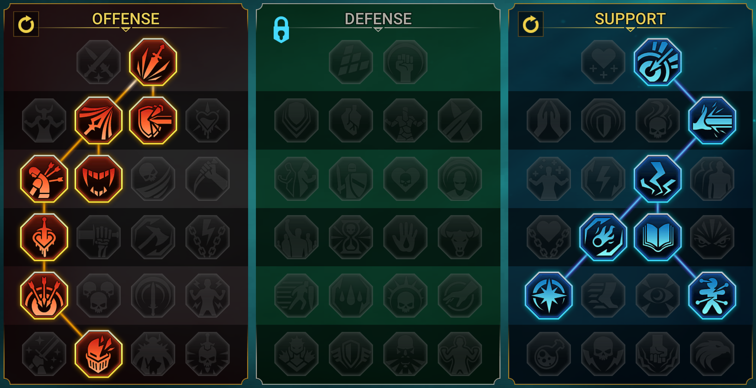 Offense — Deadly Precision, Keen Strike, Shield Breaker, Life Drinker, Single Out, Bring it Down, Methodical, Helmsmasher.