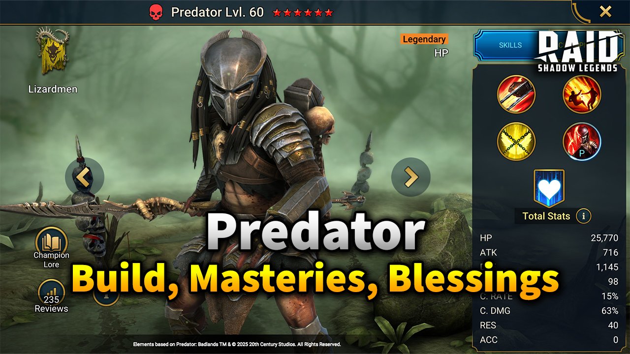 One of the best Blessings for Predator is Heavencast, this will help you in any content in RAID. However, if you’re aiming to build Predator for other specific Game Modes, check out the table below for tailored recommendations.